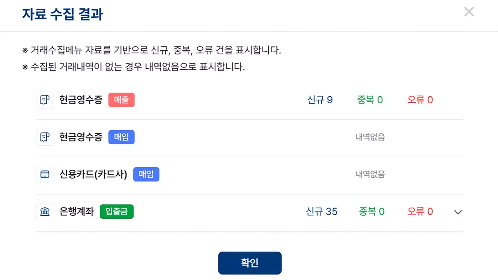 기존 방식에서는 각 사이트에 개별적으로 접속해서 거래 내역을 확인하고, 엑셀로 다운로드받아 수작업으로 분류하는 과정이 필요했습니다. 하지만 자동수집 시스템을 도입하면 최초 1회 연동 설정만 완료하면, 이후부터는 클릭 한 번으로 모든 거래 내역을 통합 조회할 수 있습니다.